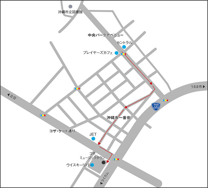 ※ ツアーはコザの街を巡って、またこちらに戻ってきます。